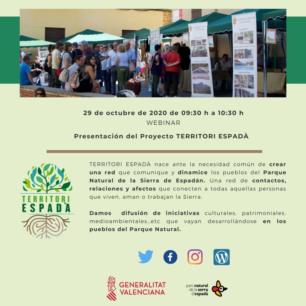 El pasado 29 de octubre celebramos un webinar para presentar el proyecto Territori Espada a la Red de Espacios Naturales Protegidos de la Comunitat Valenciana.