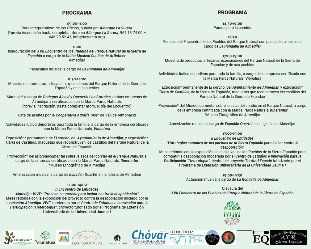 Este año celebramos el XVII Encuentro de los Pueblos del Parque Natural el sábado 28 de septiembre en el pueblo de Almedíjar. Este año queremos centrar el debate que programamos este día en el problema de la despoblación, un problema que afecta directamente a todos los pueblos de la sierra.